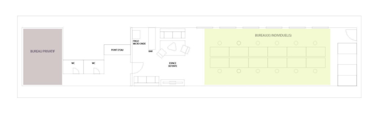 Composé d'une salle de réunion, un open space et un espace détente avec cuisine.